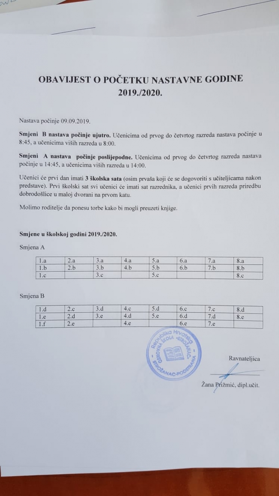 FOTO - Raspored smjena nove školske godine foto:pp