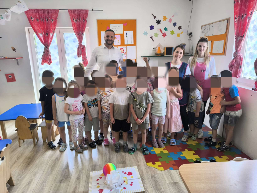 Djecu je razveselio velikim poklon paketom punim slatkiša, igračaka i slikovnica namijenjenim za igru i druženje u dječjem vrtiću. Na kraju su djeca izvela prigodni program, te načelniku uručili svoje radove na poklon.