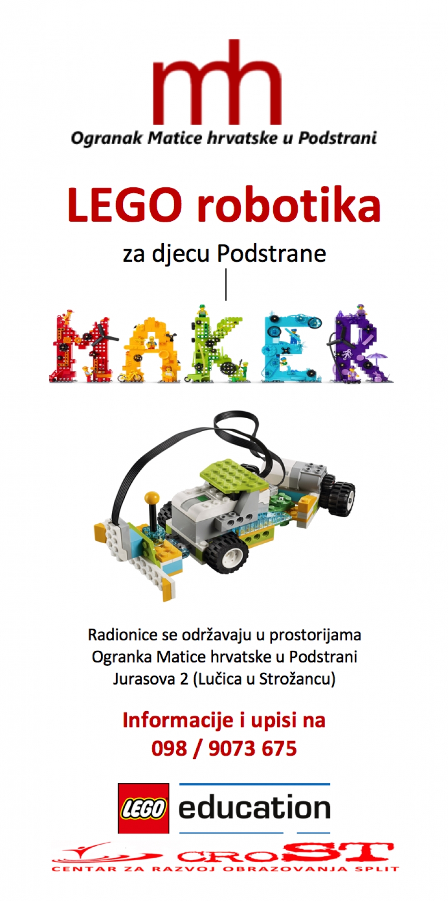 Ogranak Matice hrvatske u Podstrani organizira radionicu LEGO robotika za djecu Podstrane