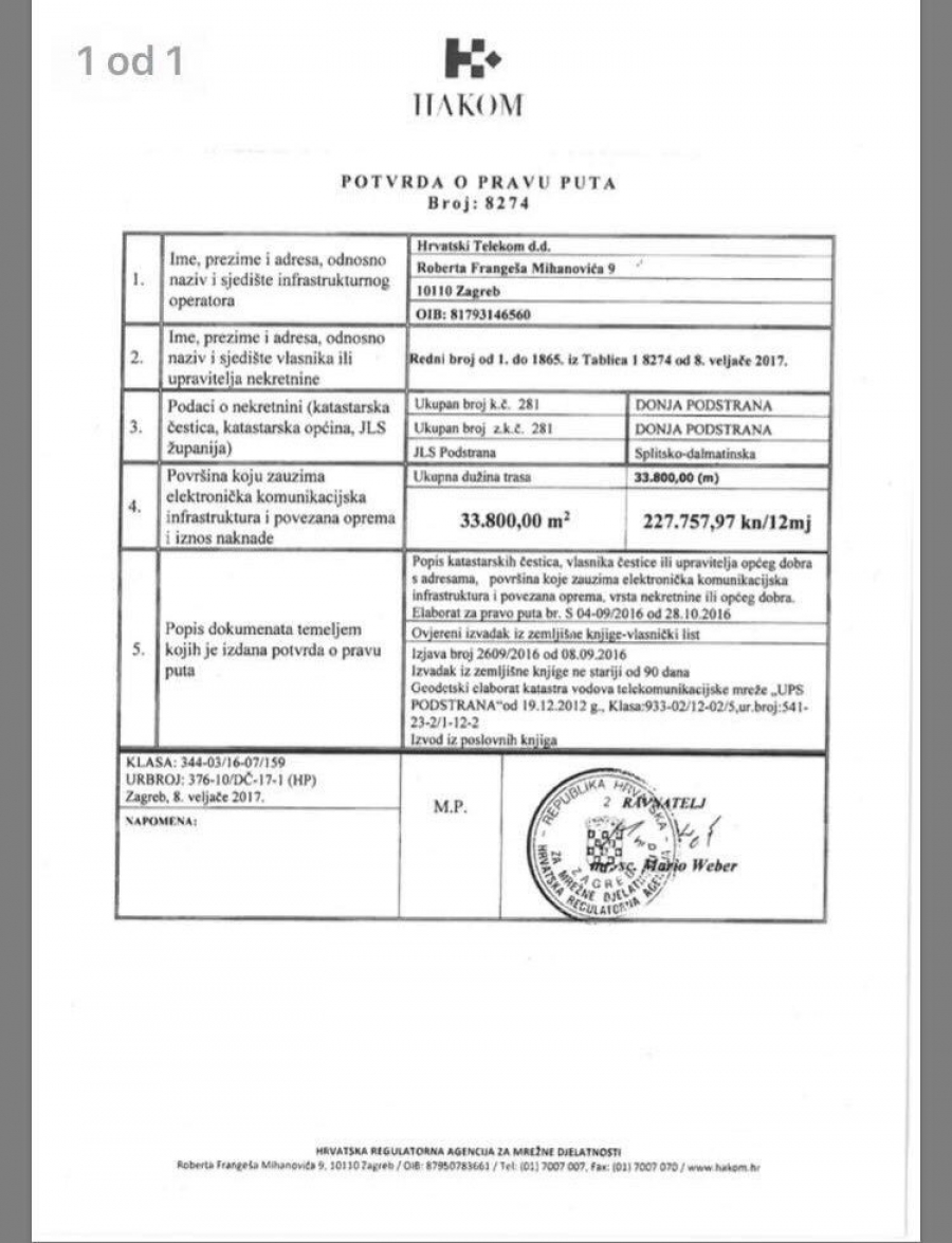 Općina naplatila Hrvatskom telekomu više od 200.000,00 kuna