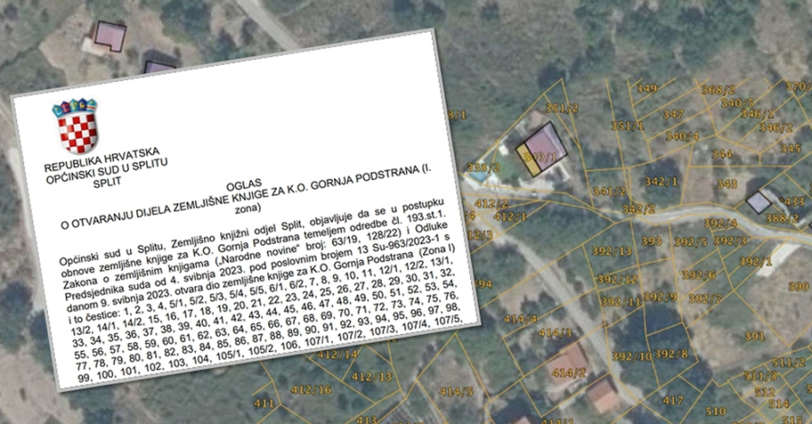 OVO BI TREBALI ZNATI Objavljen „Oglas o otvaranju dijela zemljišne knjige za k.o. Gornja Podstrana (I. zona)“. Pogledajte što vam je najvažnije!