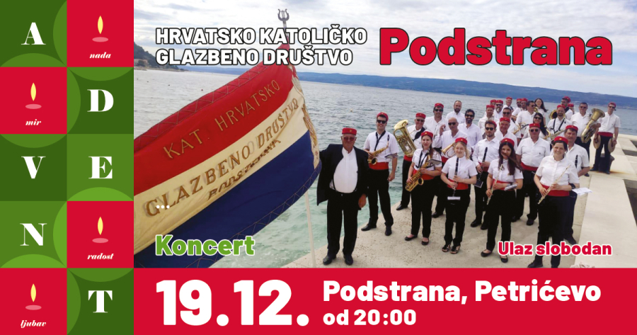 U sklopu Adventa, 19.12. 2024. u 20 sati nastupa Hrvatsko katoličko glazbeno društvo Podstrana.