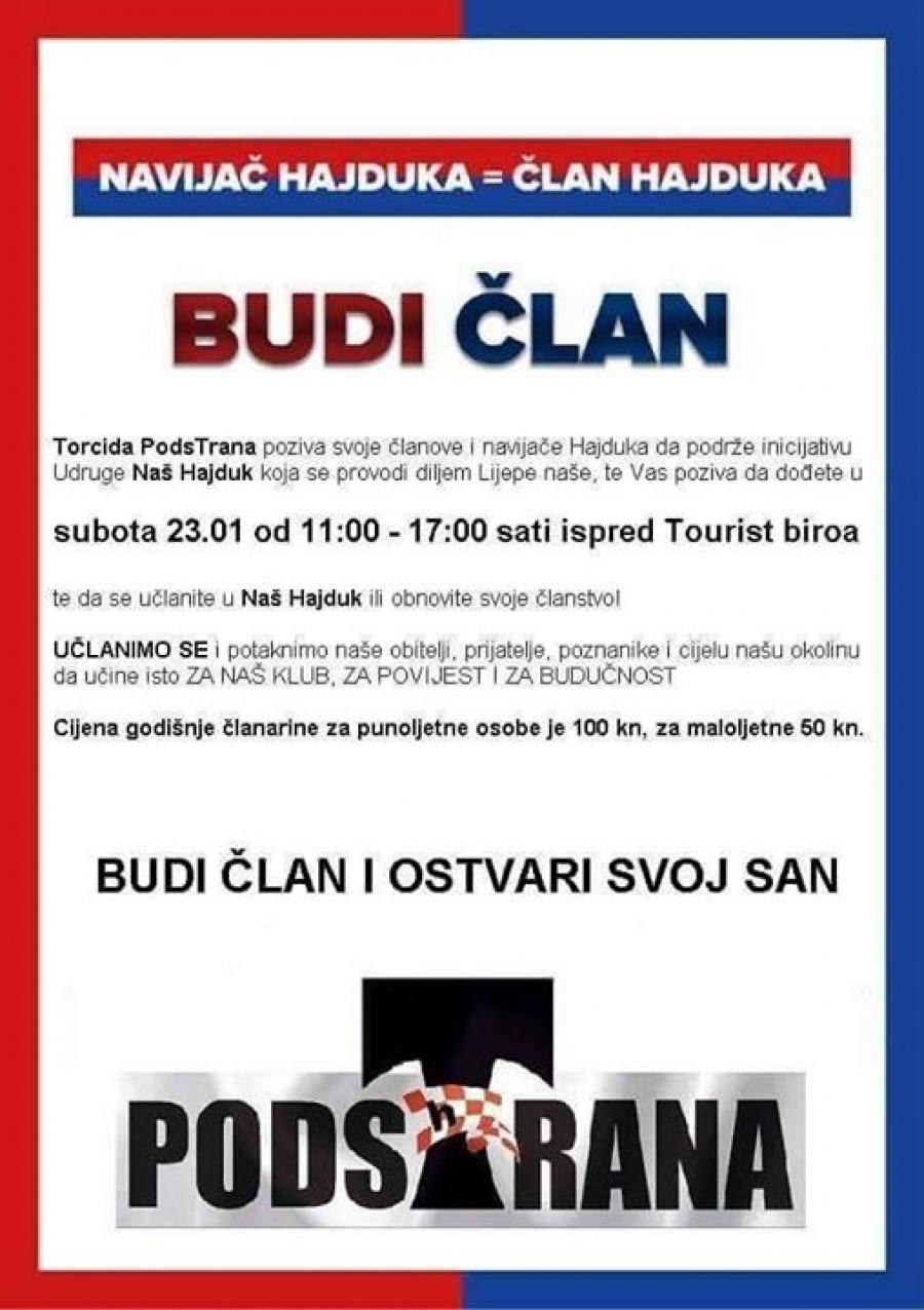U suboTu 23.01. od 11-17 saTi ispred Tz-a slika: Torcida Podstrane