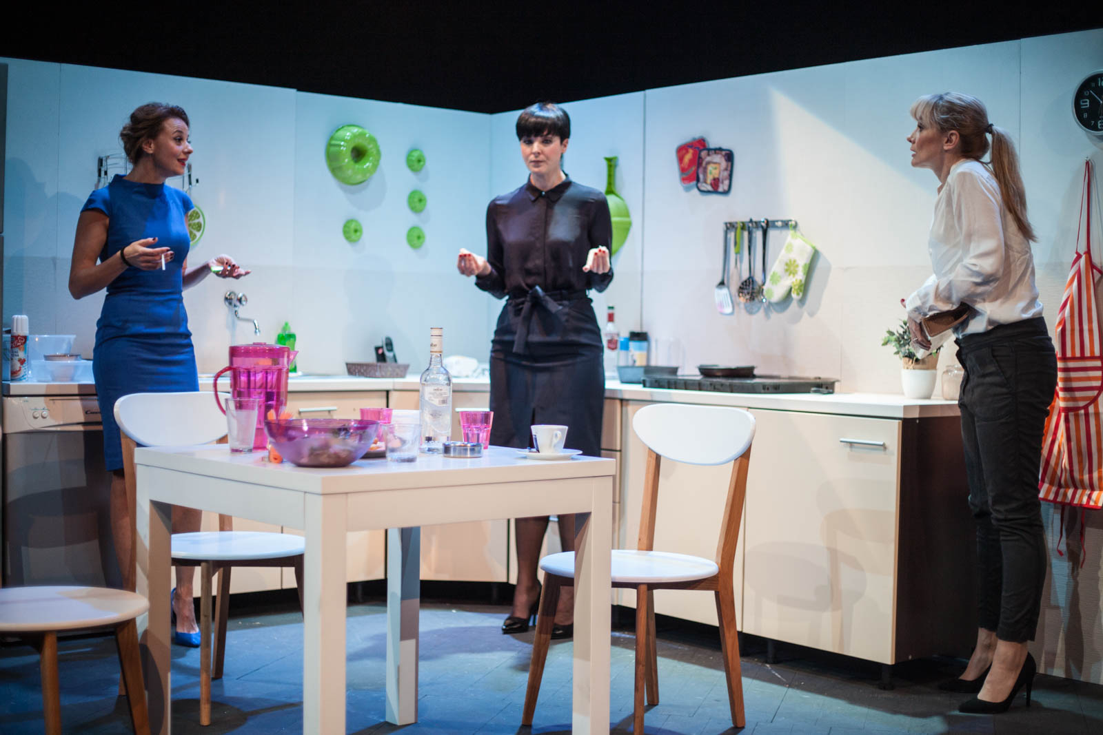 Komedija počinje pripremom uobičajenog druženja – večere na kojoj se jednom mjesečno okupljaju tri bračna para. Žene su u kuhinji, a muškarci u dnevnoj sobi igraju improvizirani golf, nepodnošljivo iritantni, iako se kroz čitavu predstavu pojavljuju samo glasovima. Žensko čavrljanje ubrzo zamjenjuju iskrene ispovijesti o brakovima koji su, sva tri, na rubu propasti – jedan suprug optužen je za pronevjeru, drugi je patološki ljubomoran, a treći je preljubnik. Vrhunac zapleta predstavlja scena u kojoj su muškarci, pogreškom, zatvoreni u veliku hladnjaču, a tri supruge nađu se pred zanimljivim izborom – osloboditi ih i nastaviti po starom ili se riješiti problema jednom zauvijek...