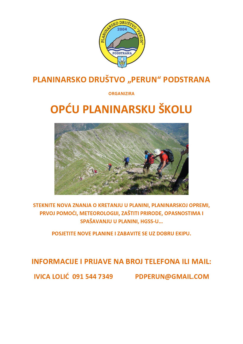 Planinarska škola počinje u srijedu 28.10. 2015 u 19h u prostoru udruga u Strožancu, (pored TZ Podstrana).