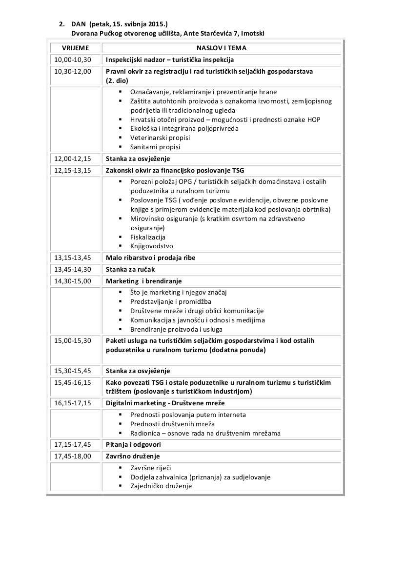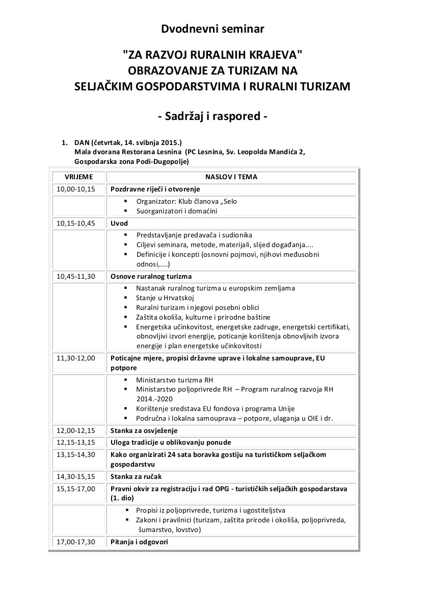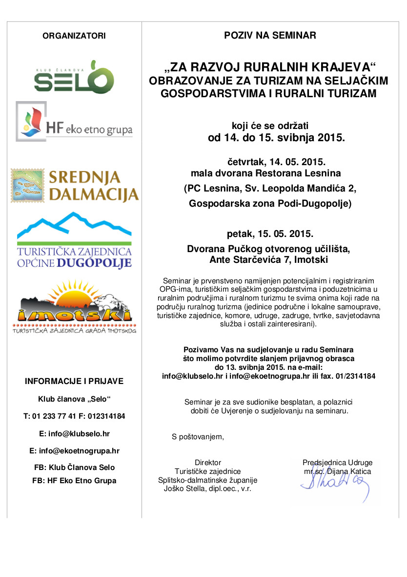 Općina Podstrana Vas poziva na seminar o ruralnom turizmu (Dugopolje-Imotski, 14.-15.05.2015.)