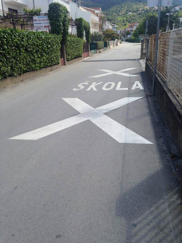 Ispred osnovne škole Strožanac na kolniku su postavljeni ležeči policajci i oslikani obavijesni znakovi "Škola"!