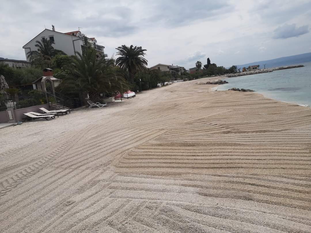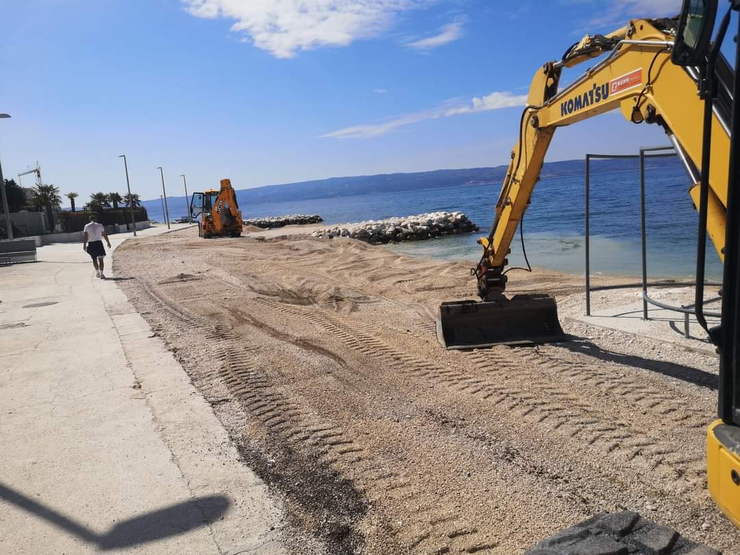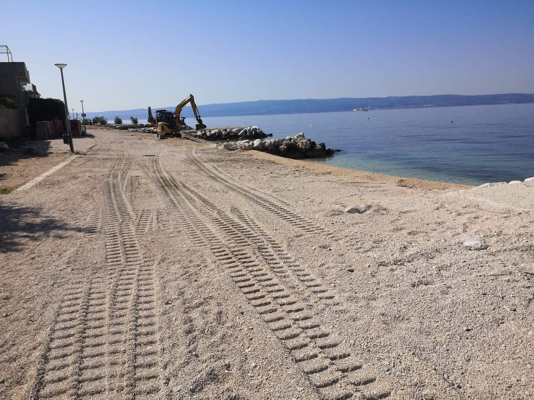 Dovršeni su radovi na dohrani plaže i sanaciji oštećenih pera na području Podstrane i sve je spremno za početak turističke sezone.