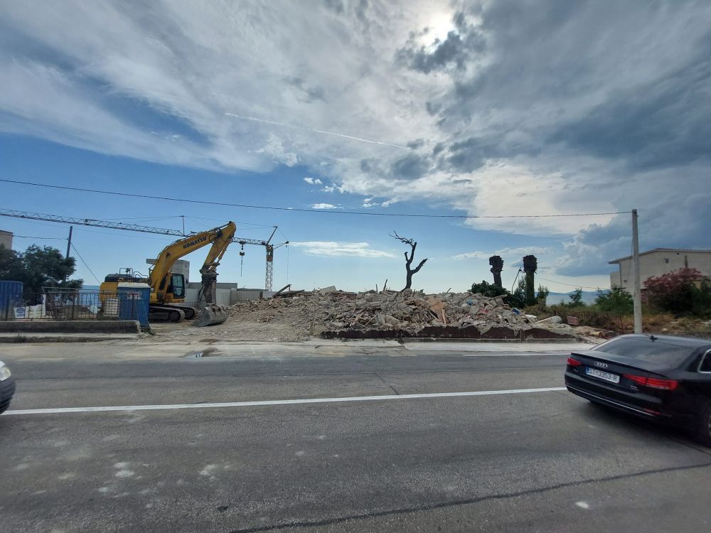'Temeljem analize stanja konstrukcija postojećih zgrada na navedenoj lokaciji, po prethodno pribavljenoj dokumentaciji iz arhive Područnog ureda za katastar Split i nadležnog konzervatorskog odjela u Split, izrađen je projekt uklanjanja trošnih postojećih zgrada koje su predstavljale ugrozu sigurnosti za okolinu. Uz suglasnost Ministarstva prostornoga uređenja, graditeljstva i državne imovine pristupili smo uklanjanju ruševnih zgrada.